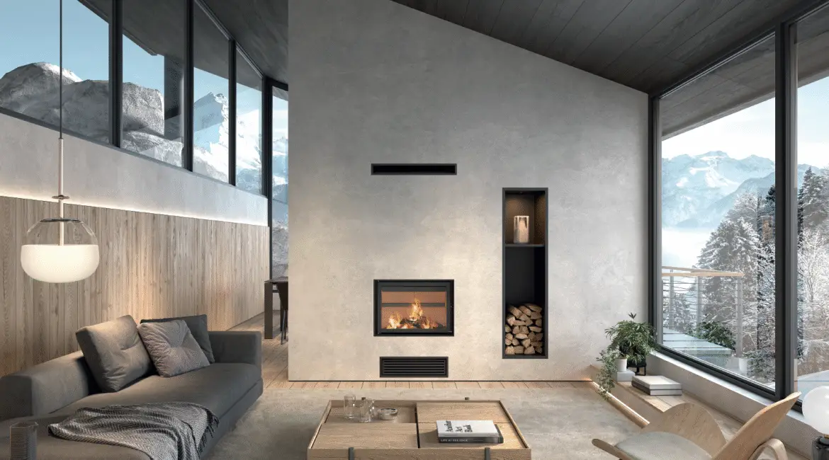 Instalados en obra nueva, los hogares de leña requieren un revestimiento posterior en pladur anticalórico, adaptable con pintura, porcelánico o metal. Incorporan una cámara de convección que mejora el intercambio de calor y permite canalizarlo a otras estancias. Diseñados para una visión amplia del fuego, están disponibles en versiones de rincón, esquina, doble cara o guillotina, combinando estética y eficiencia en un solo sistema.